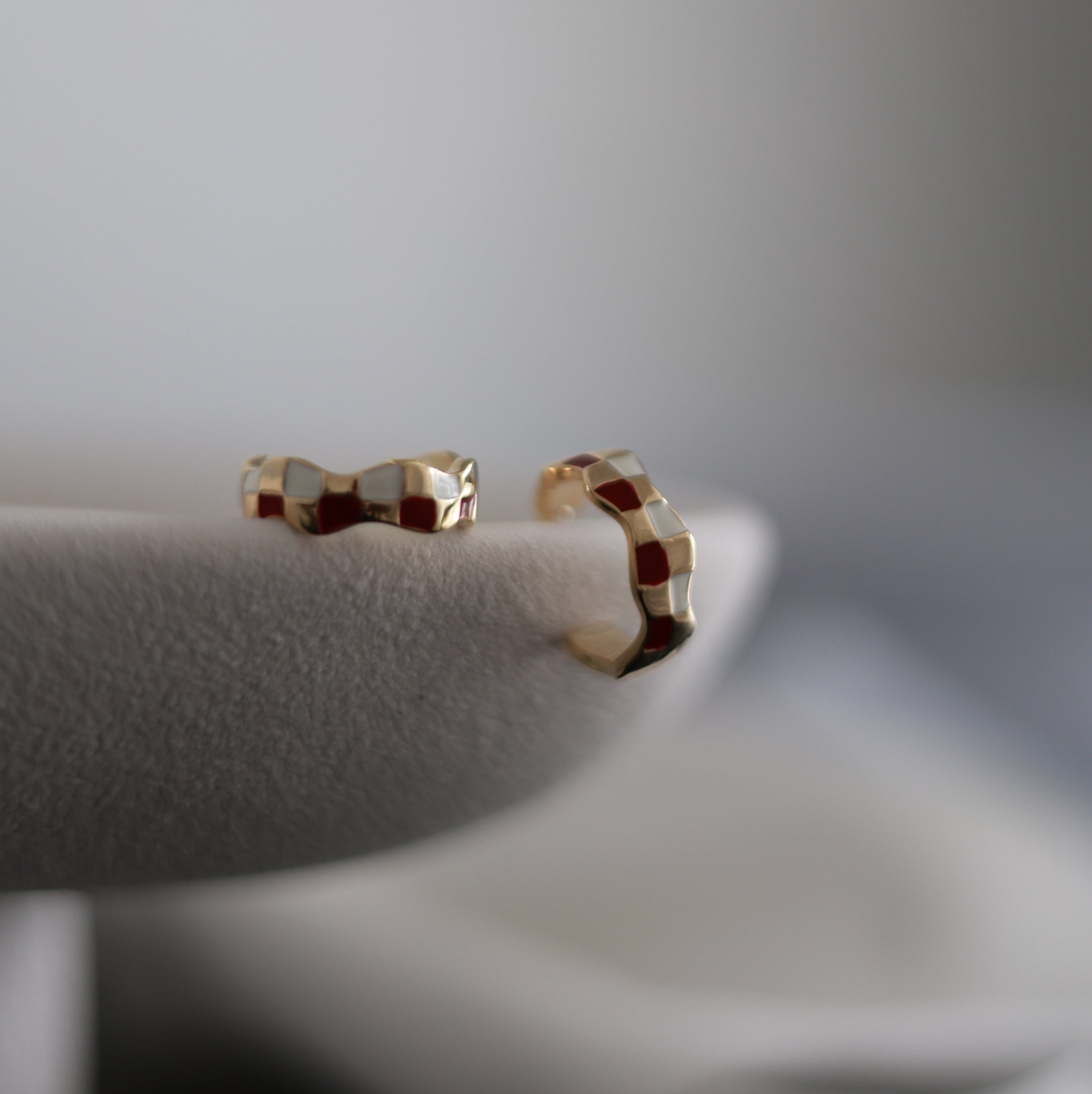 Retro, refined, and ready for café mornings. The checkered hoops bring effortless French cool to your daily look.
