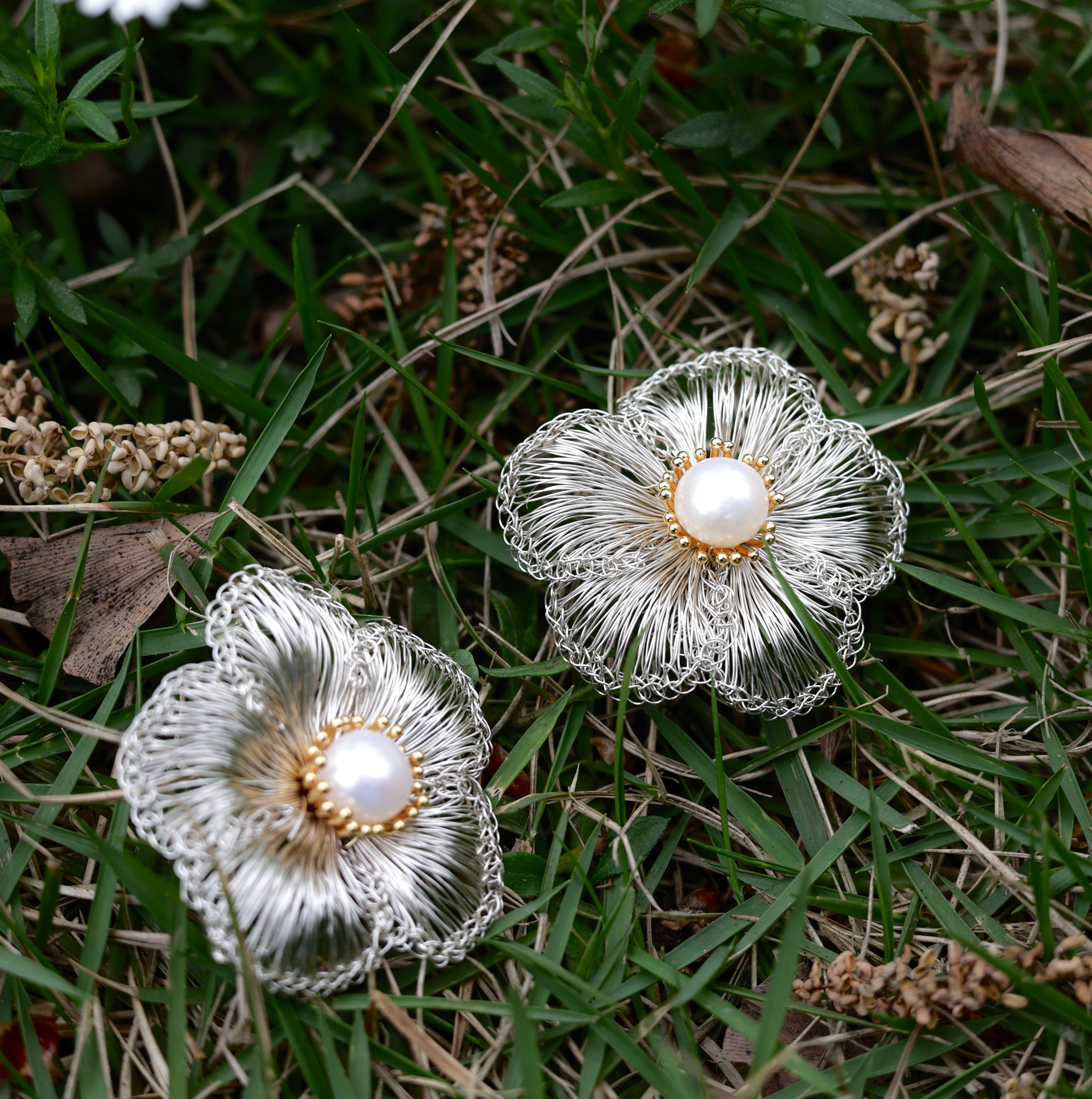 Wild Bloom · Earth Tone Petal Pearl Earrings