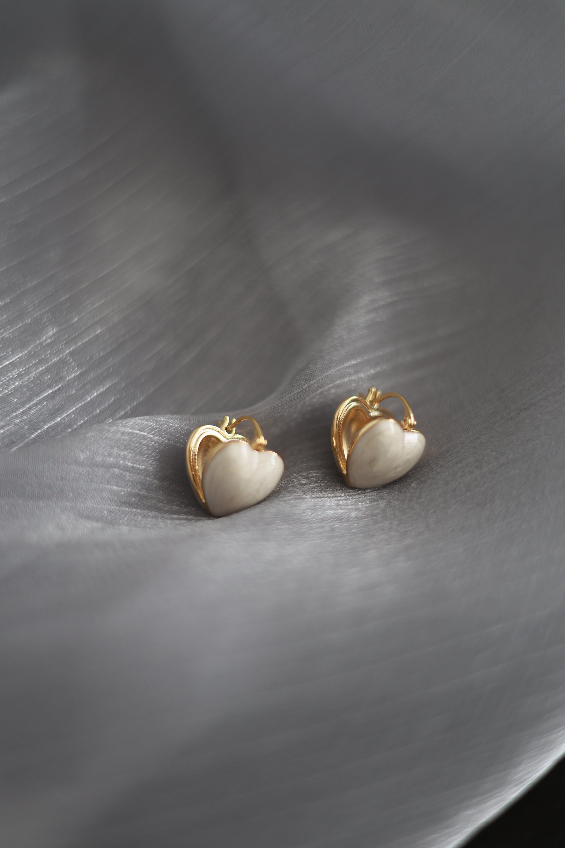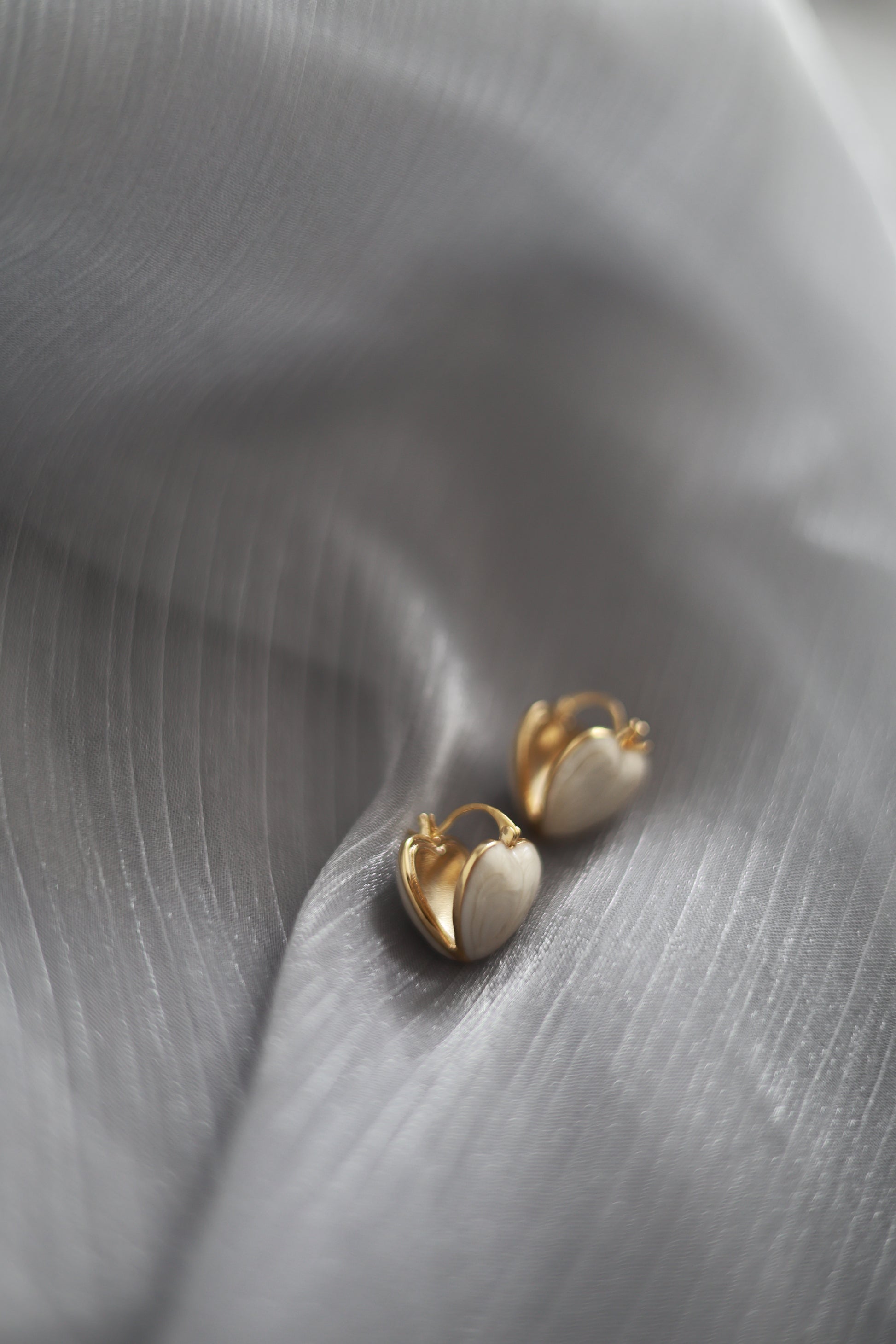 Delicate yet bold, these ivory enamel heart hoops are a celebration of softness and strength.